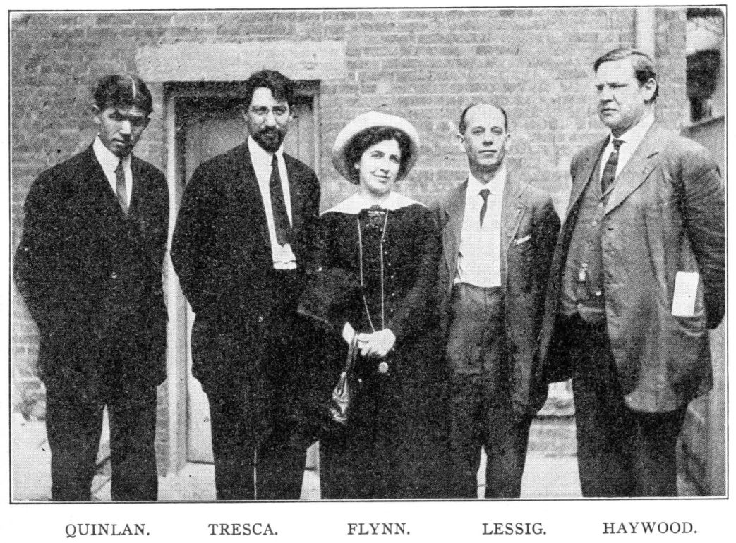 On Saturday afternoon, May 10, a new trick was sprung. All the papers in New Jersey and New York broke loose with flaring headlines announcing that an attempt had been made to wreck an Erie express train in Paterson, by means of rocks piled on the tracks, and that the I.W.W. was “suspected.” This looks like a scheme similar to the planting of dynamite in Lawrence to discredit the strikers. Or it may be an attempt to influence the minds of jurors in the coming trial of Gurley Flynn, Tresca, Lessig, Quinlan and myself on indictments charging “incitement to assault,” riot, disorderly assemblage, and other high crimes.