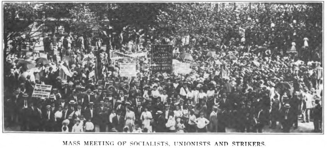 It is not to be supposed that these seven thousand men and women carrying on a contest for wages which will give them a decent subsistence and for working conditions which will enable them to live as human beings have been always peaceable and have always refrained from meeting violence with violence. Can it be expected of these workers, fighting for their very lives, that they turn the other cheek when attacked by ruffians brought into the city by their employers? But it can be said without fear of contradiction that nine-tenths of the violence which is laid at the door of the strikers has been the result of aggression on the part of the so-called “guards,” hired to create disturbances.
