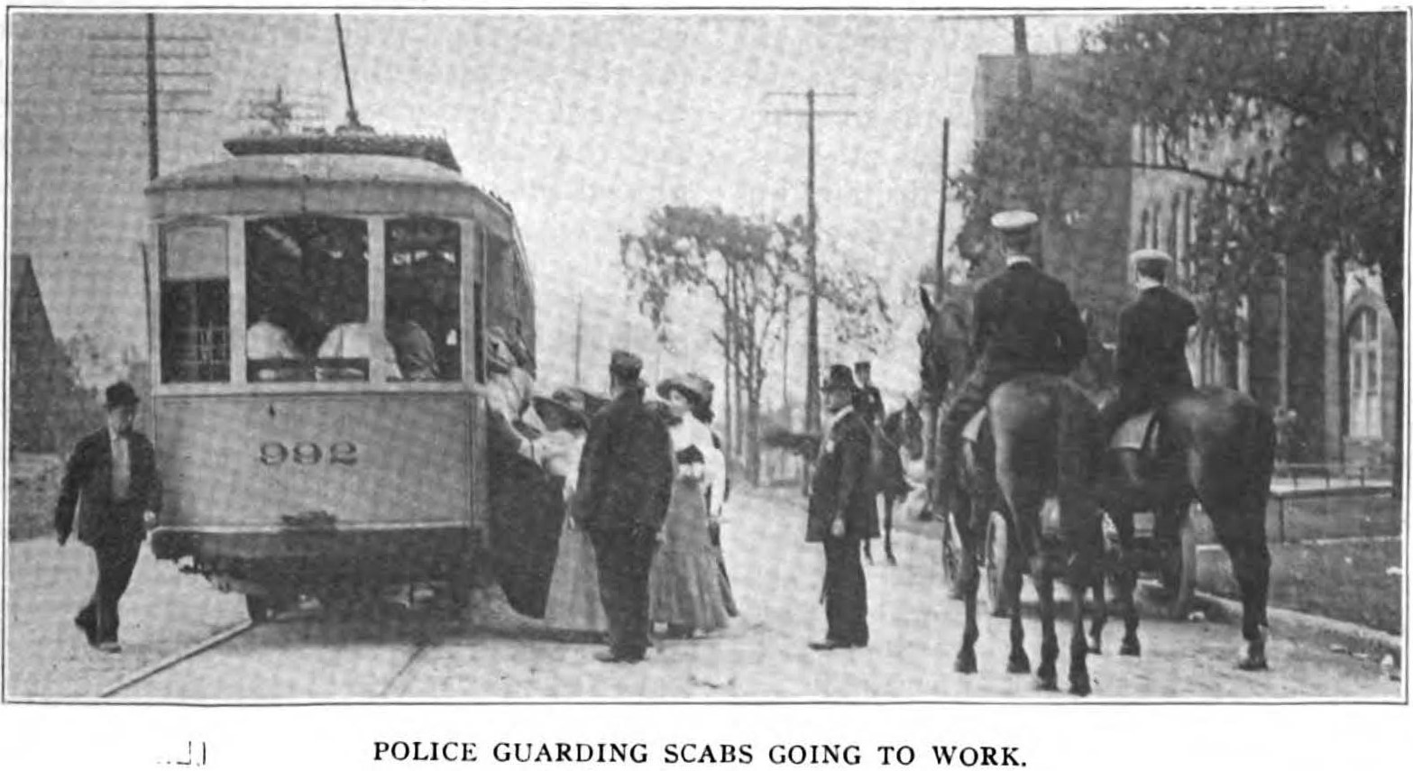“The Cleveland strike has resulted in one death, thirteen serious riots resulting in shooting, slugging, smashing of windows, destruction of property, severe fighting and assaults, which were only quelled by calling out the police reserves; one vitriol throwing affair; three shooting affrays of major character not counting riots; one stabbing affray; twenty-two grave assaults and many street battles; many riotous affairs in which men were beaten up, wounded, and shots were fired; several hundred cases of violence where blows have been struck and hundreds of cases of missile and egg throwing and disorderly conduct. Over three hundred arrests have resulted.”
