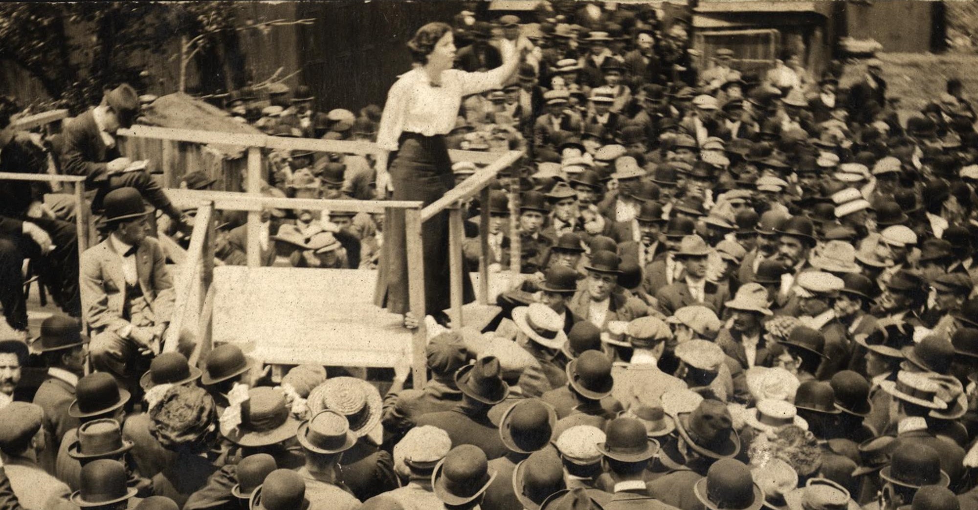 Flynn recounts her speaking tour to the west in 1909, with stops remarks on Butte, Seattle, Minneapolis, Vancouver, and Spokane.