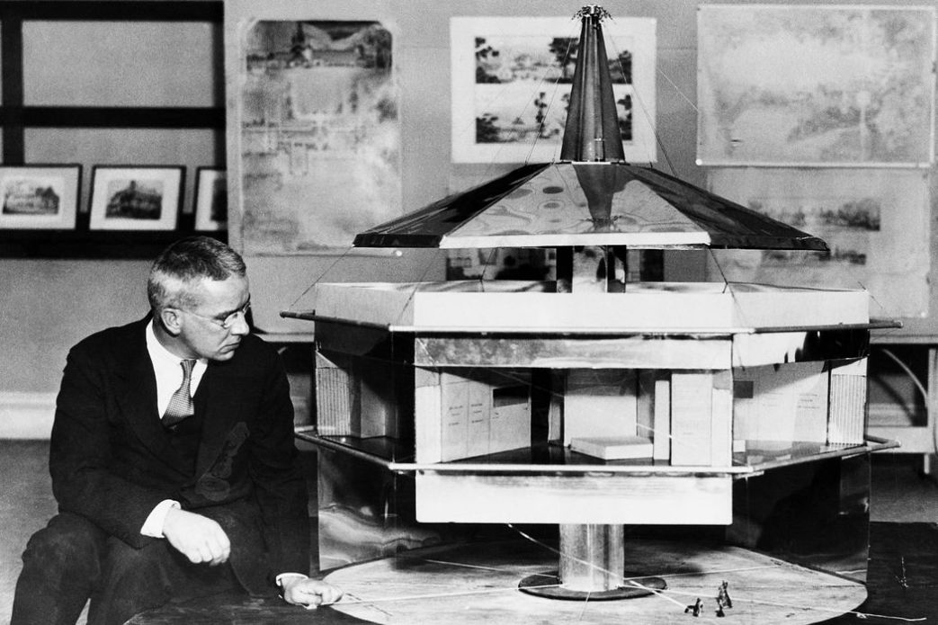 He proceeds from the notion that the housing industry is the primary one to-day and that it has a tremendous future since it must produce 20 billion shelters in the next 70 years, hence 280 million a year. Analysis of present methods leads to the conclusion that private-profit is prejudicial to Universal Architecture, but that change from capitalism to a better system of communal service will come about automatically from the social attitudes resulting from improved technology. Because it is possible to produce all the material goods of life with the barest effort—seven hours per month per worker—the existing wasteful industry will necessarily be replaced by a more scientific system of which the socialist character is intimated but not brought out clearly. Precisely how technology will yield this result is never stated; but it is assumed that a liberal architecture, designed to make people comfortable, is an ideal framework of society and a model to other industries, and must lead to elimination of present corruption and poverty. Legislation is astutely rejected as the means (but) “industry is and will be responsible for the majority of growth performance, to the extent of the development of a popular awareness of the conditions outlined.” And “thereafter by the process of the Americanly preferred accelerated evolution, as opposed to revolution, there will develop an even more universal awareness of the already factual establishment of the abstract credit system.” Capitalism, it seems, will simply wither away. It will disappear silently. The ruling class will awaken one morning and discover that its holdings are valueless, but that its services to humanity will continue on a noble technological level.
