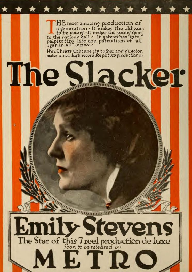 Hearst, more interested in Mexico and Japan than in Europe, took the serial, The Last of the Cannings, glorifying the Dupont family and American womanhood, and converted it into Patria, an attack on Hearst ’s phobias. We were not yet at war with Germany but close to it, and Japan was an ally of Britain, an enemy of Germany. Woodrow Wilson asked that the anti-Japanese touches be removed. The Japanese flag was lifted out, and, by contiguity, the Mexican too. Preparations for the war-objector were part of the preparedness propaganda. In the last months of 1916 The Slacker told of the conversion of a society butterfly into a flag-sycophant. It should be indicated also that the soldiers in War Brides, against whom Alla Nazimova rose, were out-and-out German.