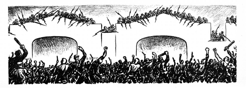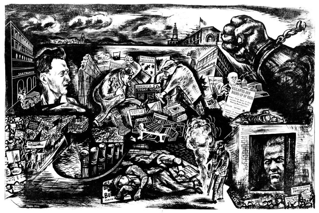 For weeks the Industrial Association, led by some of the bitterest open-shop men in San Francisco, has been straining to “Open the Port.” The phrase came to have a magic meaning. President Roosevelt’s Arbitration Board set up under the new Labor Disputes Act, and composed of Archbishop Hanna, O.K. Cushing, aristocratic and conservative attorney, and Edward McGrady, Miss Perkins’ Strikebreaker Extraordinary under the N.R.A. (who sold out the railroad and the auto strikes), pleaded with the Association to delay its action. The employers did, mean while exerting pressure on Governor Merriam and Mayor Rossi for the use of police and troops. Both these officials have an election coming up and they didn’t know what effect use of troops would have on votes. Finally the Governor, counting on the easy Hitlerization of democratic Americans, decided it was all right. The Association made its gestures–a few trucks guarded by endless files of police and radio cars, flanked by mounted men, blue-uniformed throwers of tear gas, and wielders of night sticks, tootled to and from Pier 38–