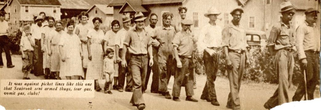 The story of the attack upon the strikers on Seabrook Farms striking for an increase in wages from 12 and 17c an hour for back breaking toil to 25 and 30c an hour is now well known. Tear gas and vomit gas were thrown into the wretched hovels in which Mr. Seabrook’s workers must exist. Children were attacked. Women were slugged and beaten. Dozens were injured. Dozens arrested on phony warrants–three and four times on identical charges on carbon copy warrants.