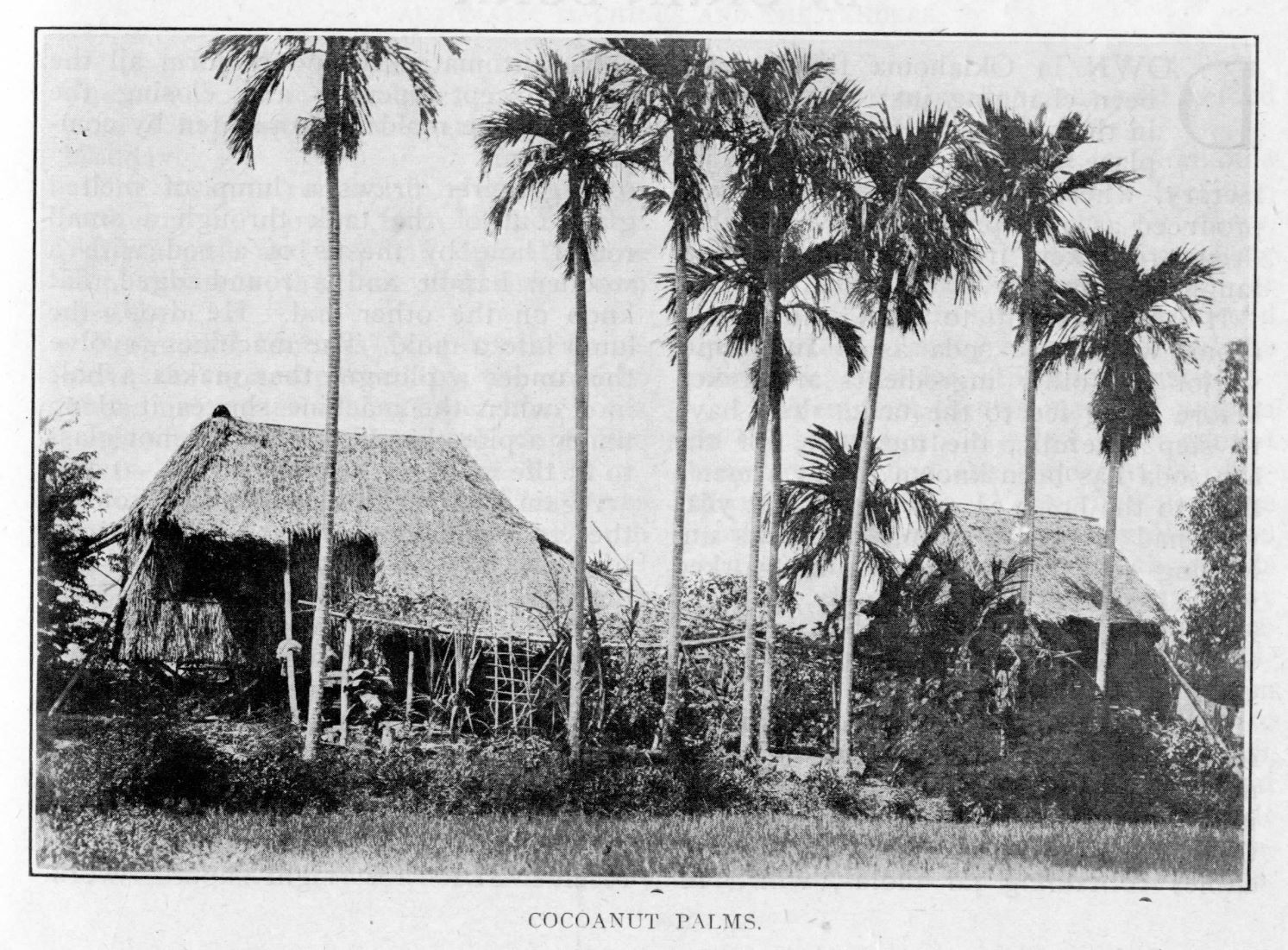 THE poor of the human race—and they are many, indeed—would indeed be left to the yellow fangs of famine if the palm tree should become extinct. There are hundreds of varieties of palms, and all of them are useful in a way that may be utilized by the poor. We may class dates and pineapples as luxuries coming from the palm tree, but the cocoanut is a dire necessity —it is the staff of life to millions. Medical men will tell you that if the druggist were to banish from his shelves all the medicines derived from coal tar and opium the corner drug store would be practically empty except for the “side issues” carried to be sold. Similarly, if the cocoanut and its products were banished from the Philippines, the home of the native would be stripped clean. He would have no root over his head; no mat under his feet; no cup for his drink—in fact, no drink—and his bill of fare would be restricted to rice and fish. The cocoanut is the most valuable tree in the world, supporting as it does many millions of human beings in all tropical countries besides the uses to which its products are put by the people of civilized countries. Every child has seen pictures of the royal cocoanut palm and has wondered at the big brown nuts piled up at the