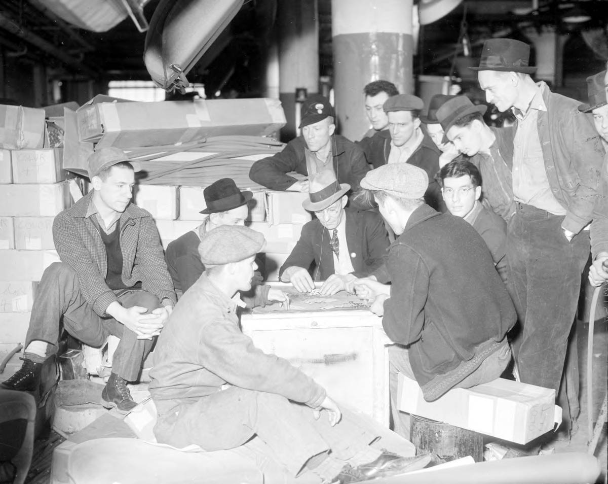 In the basement the lights are brighter. The ping pong tables provided by General Motors, which the men never had much time to use, are now in constant use. Several card games were going on. A number of the men were reading.