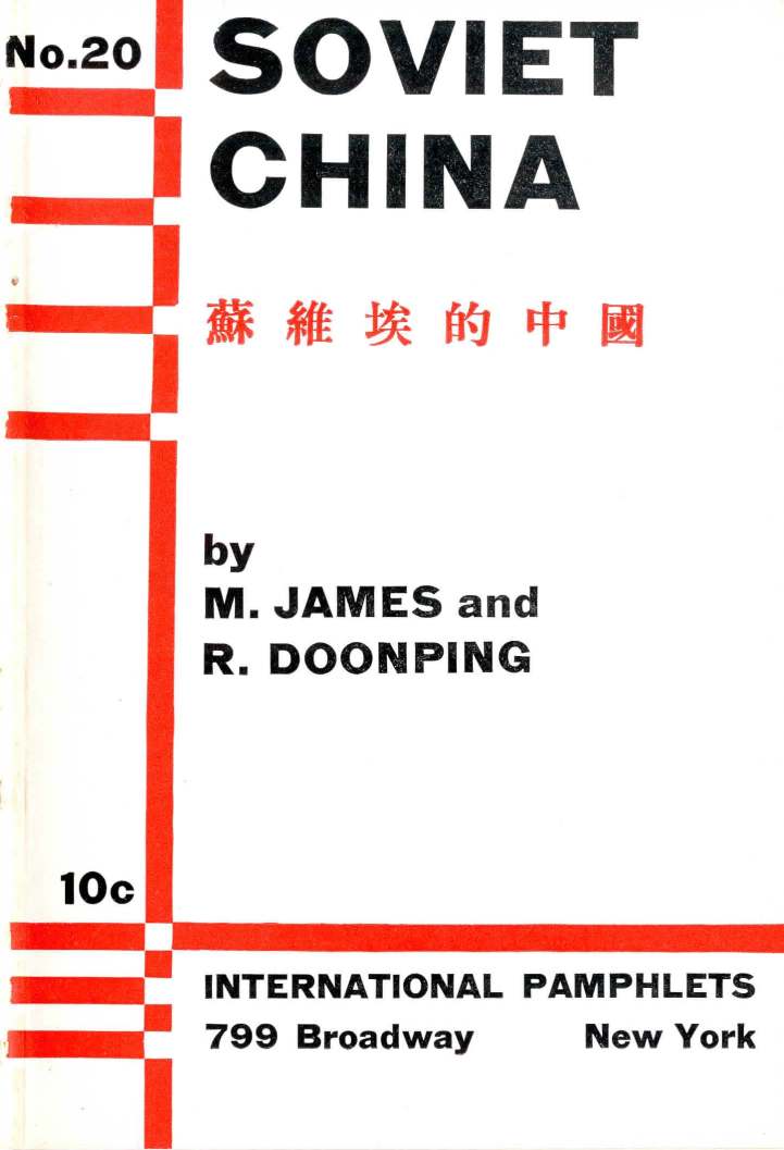 Soviet China by M. James and R. Doonping. International Pamphlets No. 20. International Publishers, New York. 1932.