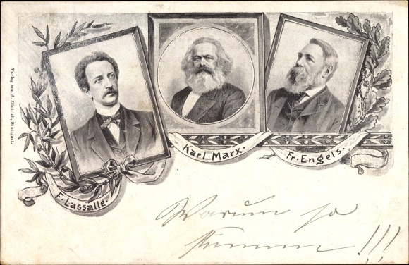 This does not indeed prevent Lassalle on the other hand, in one of his writings, from representing the “actual conditions of power” in a very telling way as the native soil of constitutions. Lassalle believes in revolution, but does not want to bring it about, but to “humanise and civilise it”. Lassalle organises the working class by the formation of the General German Labour Association on May 22nd 1863, but emphatically declines the thought of a dictatorship of the proletariat. In his speech “The Worker’s Reader” (1863) he protests against: