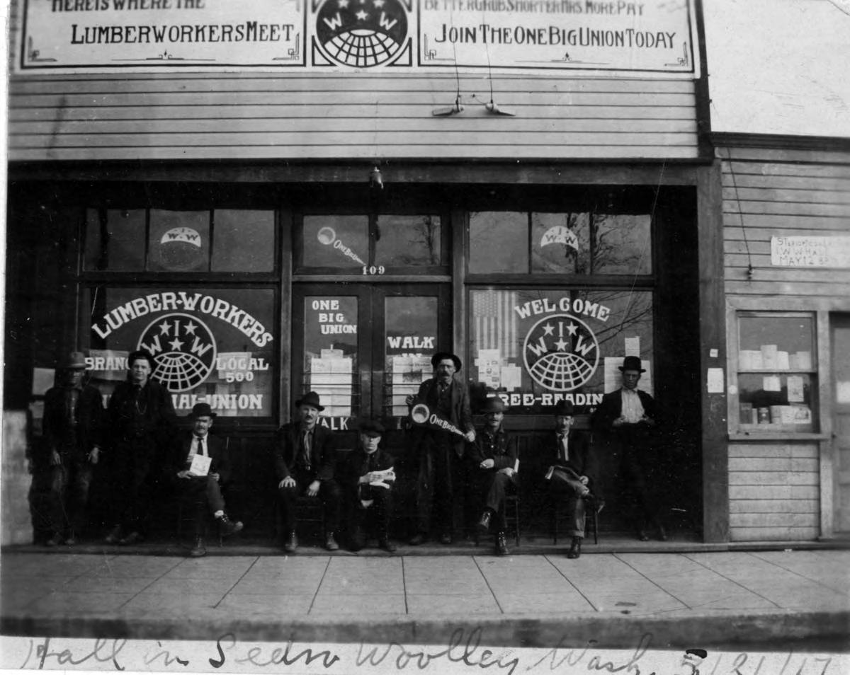 The strike situation all over is still good. The striking Lumber Workers are standing as solid as the Rock of Gibraltar, and will not go back until the eight-hour day is won. The reign of terrorism in the Lumber Belt of the Northwest is still being continued, and the Governor of Idaho, Moses Alexander, has descended from his high office to function as a stool-pigeon for Mr. Weyerhauser. A letter from John Bender at Pocatello, Idaho, informs us that Governor Alexander, after a conference with all the sheriffs of Idaho, and the State’s Attorney General, came down with the whole crew to the I.W.W. Hall, bought and paid for all the different kinds of literature there was in the hall, then placed under arrest Fellow Worker Louis Gatewood, secretary of the Recruiting Union there, and placed him in jail without any charge against him. They also confiscated all the literature in the hall. The only things they left were the desk, pen and ink.