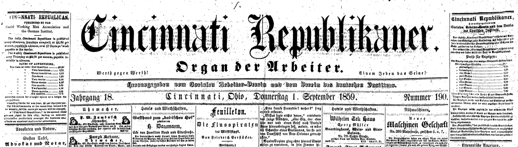 Cincinnati had five radical “Turner Halls” and “Freeman” societies connected with the community, and a dozen newspapers. Unlike many Irish immigrants of the time, and despite the Republican’s association with the Know-Nothings, this community formed a mass base of white abolitionism in Cincinnati and a number of other Midwestern cities.