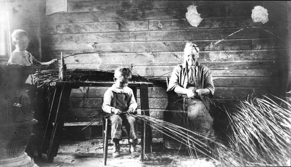 Where there are four boys in the family, whose assistance can be applied to making baskets, the father receives a little better remuneration by buying enough stock in winter to keep them supplied for the rest of the year. But even he will have to sell his product to the capitalist from whom he bought the raw material or he will be refused stock the next time he applies for it. At present there is but one family thus situated. It makes about two dollars a dozen.