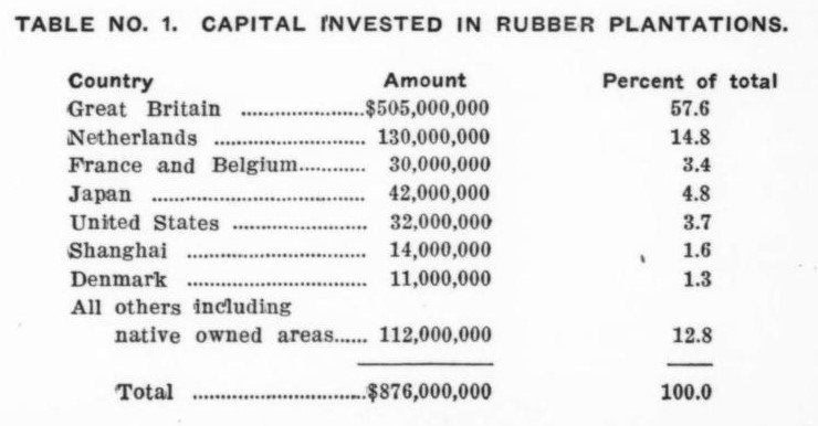 Although America is the world’s largest rubber consumer, American capital controls an unimportant fraction of the world’s rubber plantations, as can be seen from the table given below.