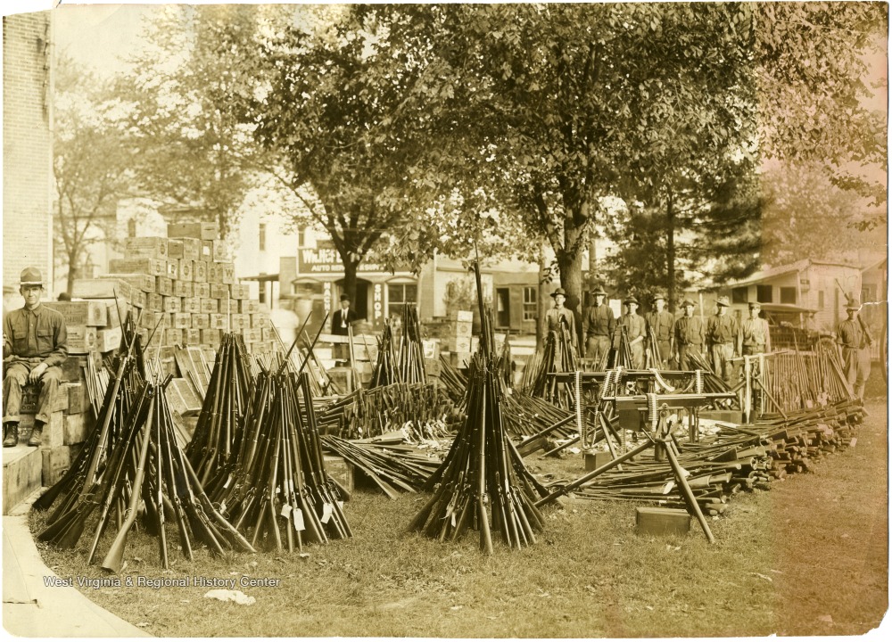 “That morning 2,000 miners met at Holly Grove, where many lived in tents in the open field. That evening they marched up Paint Creek, through the dense forest, to Mucklow, the stronghold of the guards, where they were entrenched around the mines with machine guns.