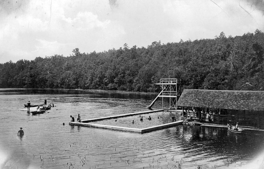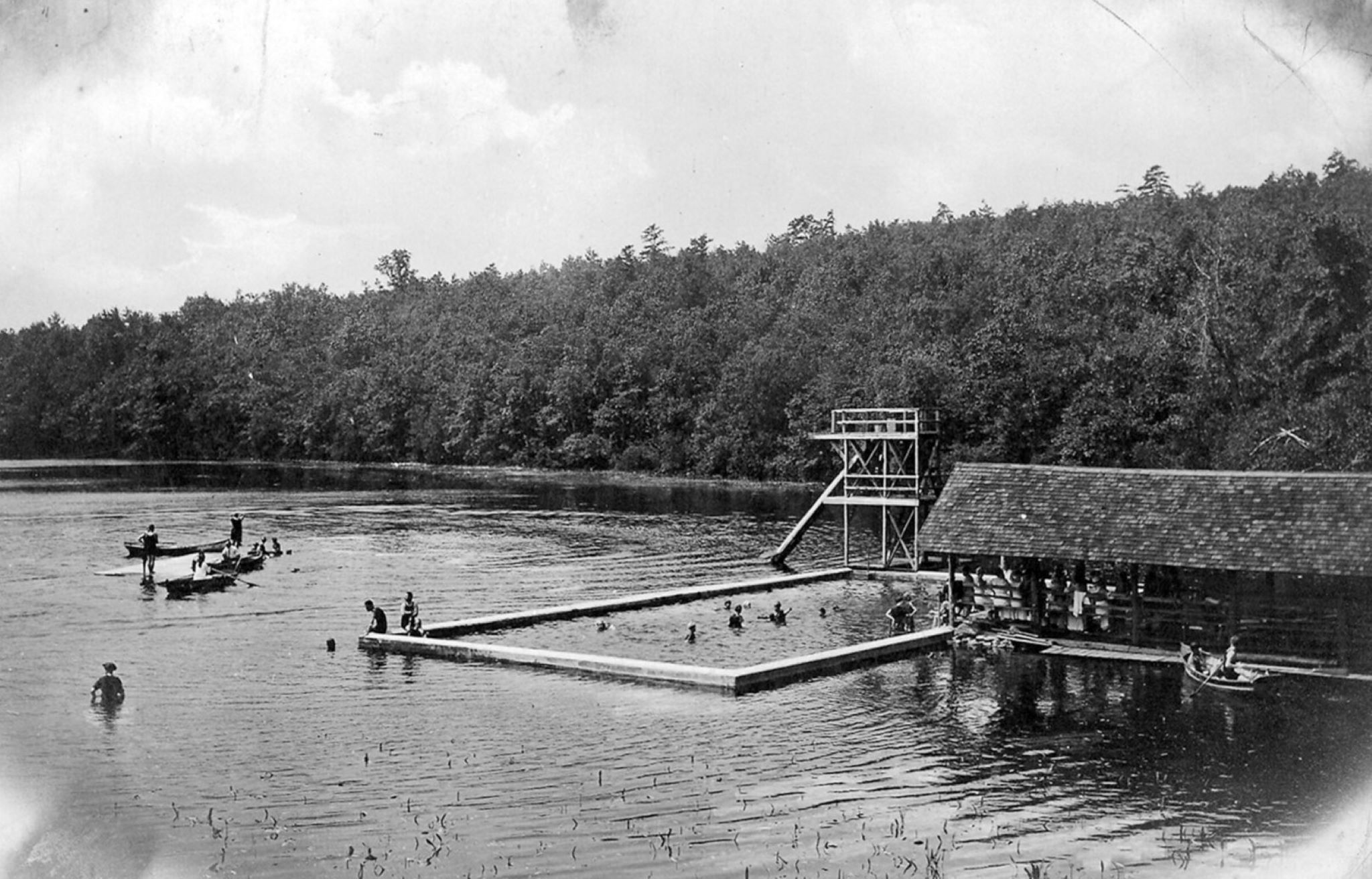 The day is over; the cool kisses of twilight lull to leisure, recreation or sleep. At 8:30 p.m. sharp the music strikes up in the dance hall. It is music led by Miss Sadie Beckler, the pianist, and gets the feet panting and the shoulders yearning to trip the toe. Besides, the dance hall is beautiful, shapely in design, flushed with the lake air, and gently located upon the crest of the hill overlooking Forest Lake.