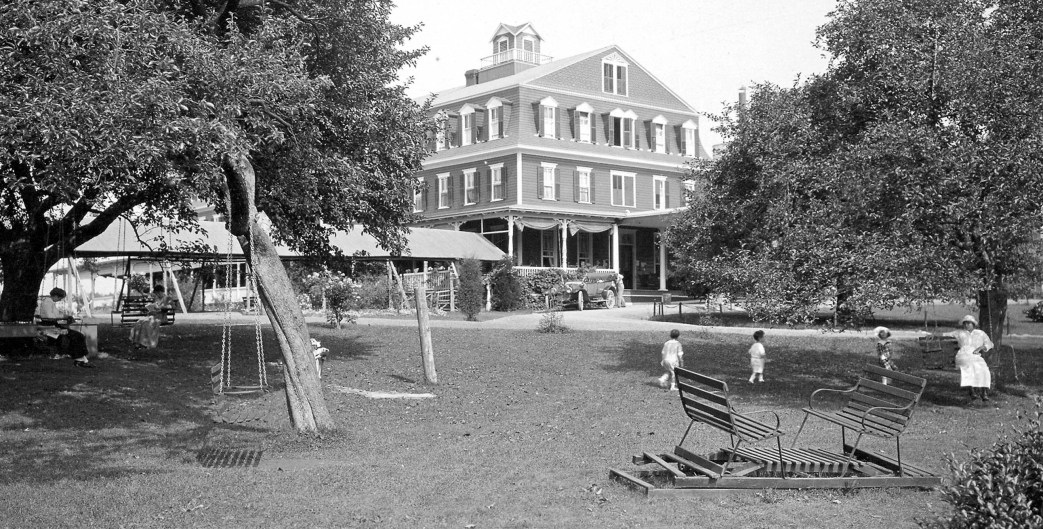 When we returned from the lake it was nearing 6:30, the dinner hour. Persons were stretched all over the green lawns–some taking sun baths, some drying after a lake plunge, others seeking the coolness of shade beneath the gentle maples, the giant oaks, the bending birches, the sweet scented cedars.