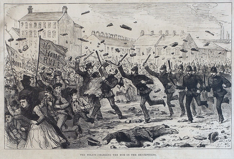 Since that day, aided by successive reactionary governments in Ireland, the Orange Society has developed into a “Free Masonry”–a combination of secret political caucus and job-trust, which on occasion can always be relied upon to produce a pogrom when such will be politically convenient to British imperialist reaction.