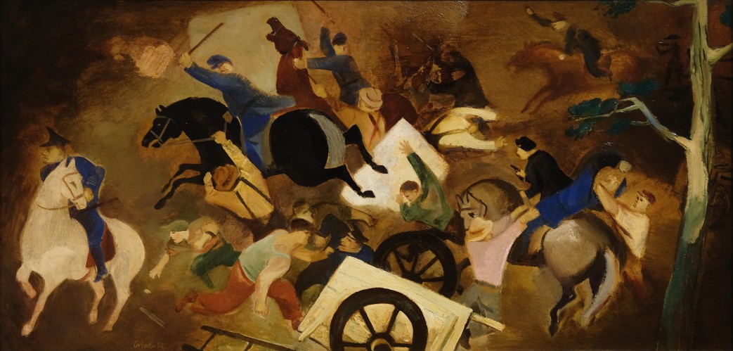 Most of us, if we are familiar with the work of the great William Gropper, know his drawings and cartoons. The prolific political artist was also a painter, with a 1936 showing at the American Contemporary Art Gallery reviewed by Harold Rosenberg–later art critic for the New Yorker.