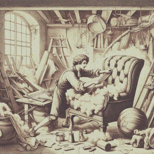 Thus, through subdivision of labor and the introduction of machinery, the passing of the skilled mechanic in the upholstering branch of the furniture industry has taken place, and the skilled upholsterer, an aristocrat of labor, is trembling and wondering “how it happened” and what will become of the skill that has required years of training of mind and adeptness of touch to acquire, and which has been so essential to place him in the front ranks of labor.