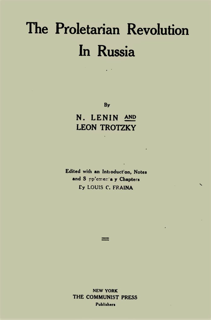 The Proletarian Revolution in Russia by N. Lenin and Leon Trotzky with Louis C Fraina. Communist Press Publishers, New York City. October, 1918.