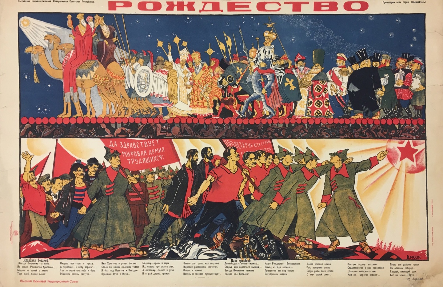 But, just as there is freedom of belief, so also is there freedom of non-belief. In this respect Russia is freer than America, which still in various of its state constitutions restricts the holding of certain offices to believers. In Russia, of course, non-belief labors under no such disability. But a more striking difference is one which is not to be sought for in the laws of the two countries, but rather in their public opinion. In the United States it is necessary for governors and presidents to render lip-homage to conventional Christian beliefs, as for instance in the proclamations by which we are urged on set occasions to give thanks to the Christian Deity for benefactions that are sometimes not very obvious. It is difficult to imagine an American president, even if he were at heart an agnostic, failing to meet such an occasion with at least due hypocricy–impossible to imagine one who would venture to state candidly the role which Christianity and its Deity have played in the class-struggle. If, however, we turn to Russia, we find Bukharin, member of the supreme economic council of the Soviet State, and delegate to the International Communist Conference writing, in an article on “Church and School in the Soviet Republic”: “One of the instruments for the obscuring of the consciousness of the people is the belief in God and the devil, in good and evil spirits, saints, etc., in short–religion. The masses of the people have become accustomed to believe in these things, and yet, if we approach these beliefs sensibly, and come to understand where religion comes from, and why it receives such warm sup- port from the bourgeoisie, we shall clearly understand that the function of religion at present is to act as a poison with which the minds of the people have been and continue to be corrupted.”