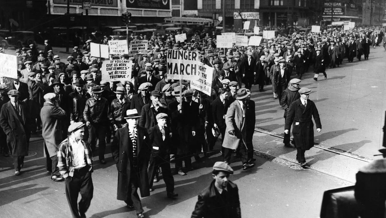 Herbert Benjamin, National Organizer of the C.P.-aligned Unemployed Councils, visits Detroit in the fourth year of the Great Depression on a national tour.