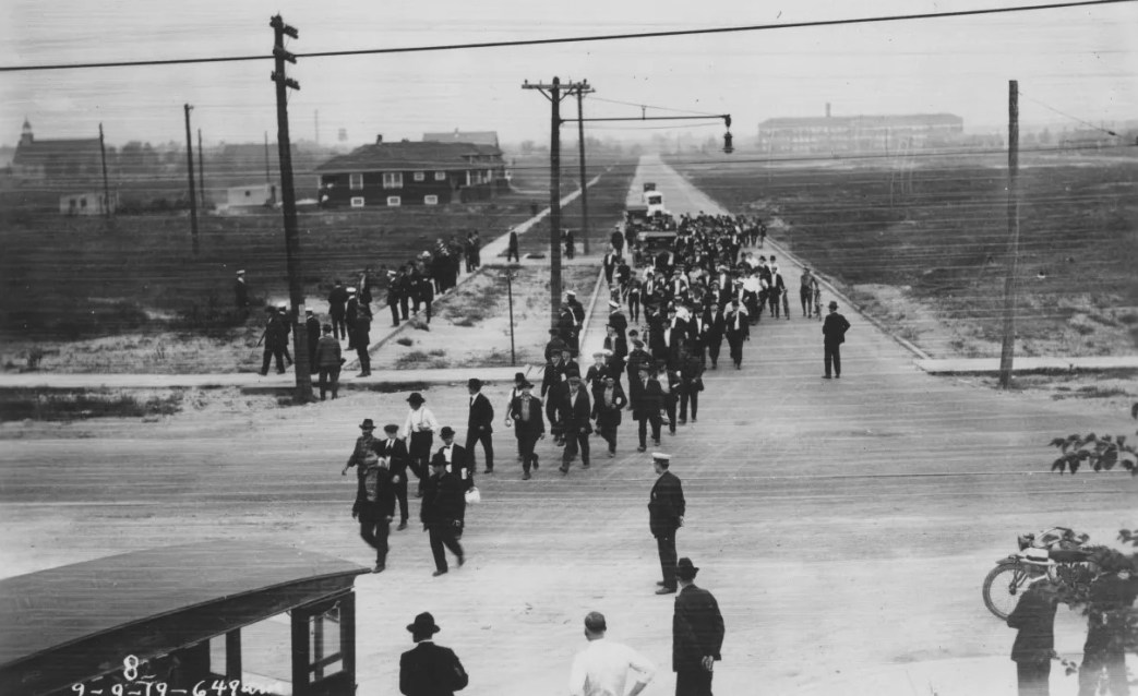 On September 9, 1919, during the massive steel strike that red hot year, police fired into a crowd of pickets at Hammond, Indiana’s Standard Steel Car Co. killing Lawrence Dubeck. Stanley Skis. George Rozka and Stephen Krawczek, and wounding dozens more.