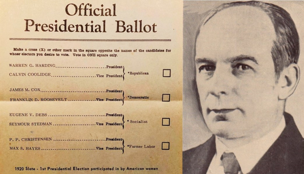 The 1920 elections, in the midst of the Red Scare, saw Debs run as the Socialist Party candidate from federal prison, where he had been during the 1919 splits from which came the Communist movement. Also running was the Farmer-Labor Party, with support from pro-war ‘Socialists.’ Thousands of Communists had been arrested or deported since, with the organizations banned and much of the leadership on trial. Eager to differentiate themselves from the Socialist Party, and perhaps guilty of Lenin’s charge of an ‘Infantile Disorder,’ both the United Communist Party and the Communist Party urged a boycott of the elections. In May 1920, as this was published, Ruthenberg’s wing of the C.P.A. joined the Communist Labor Party, which while accused of ‘syndicalism’ was not opposed to elections and in sympathy with Debs, to form the U.C.P.; causing the C.L.P. itself having a small split (Washington State) over the question. Louis C. Fraina was an outlier. As the C.P.A. international representative he was in Germany when he wrote these theses proposing that the Party run in the elections with Ruthenberg as candidate. Ruthenberg’s reply can be guessed from his pithy editor’s introduction.