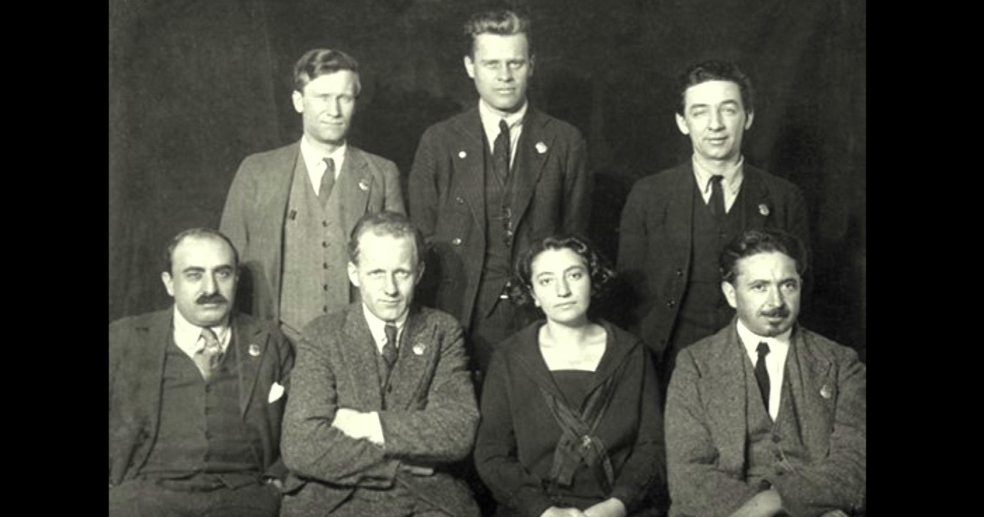 seated: Alexander Trachtenberg, Arne Swabeck, Rose Wortis, Max Bedacht.