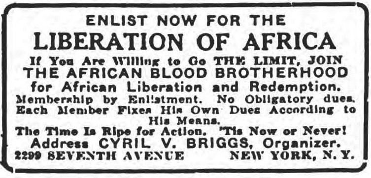 The African Blood Brotherhood for African Liberation and Redemption was the earliest Black Communist organization in the US. Founded by Cyril V Briggs in 1919 it would dissolve into the Workers Party of America 1922 with many activists joining the American Negro Labor Congress.