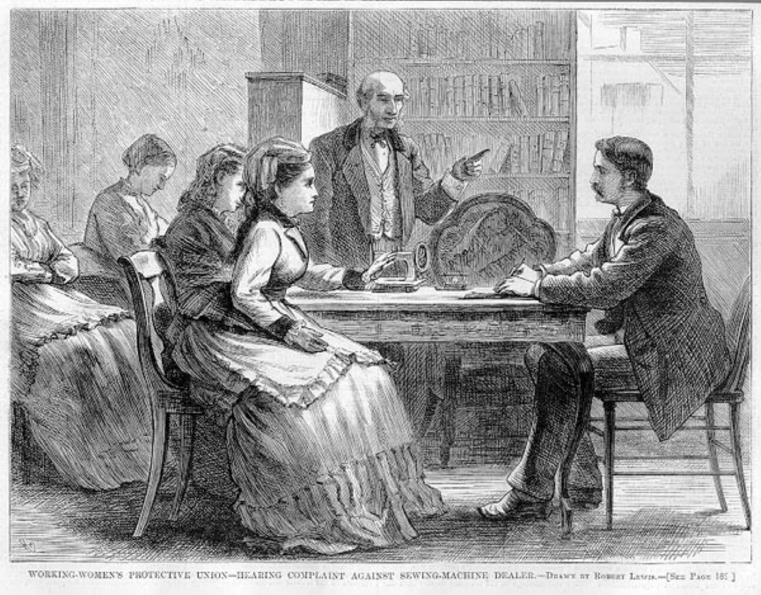 It is interesting to note that the Female Industrial Association of New York, which was formed in 1845, was the second City Federation of working women’s organizations, and consisted of tailoresses, plain and coarse sewers, shirt makers, book folders, stitchers, cap makers, straw workers, dress makers, crimpers, fringe and lace makers and in the preamble of their constitution they stated: