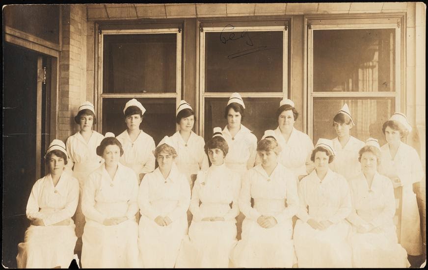 The trained nurses, who must attend a training school for two years, receive an average of $80 a month. Untrained nurses who have not finished training school, get $50 a month. All slave 12 hours a day. The clerks average about $20 a week.
