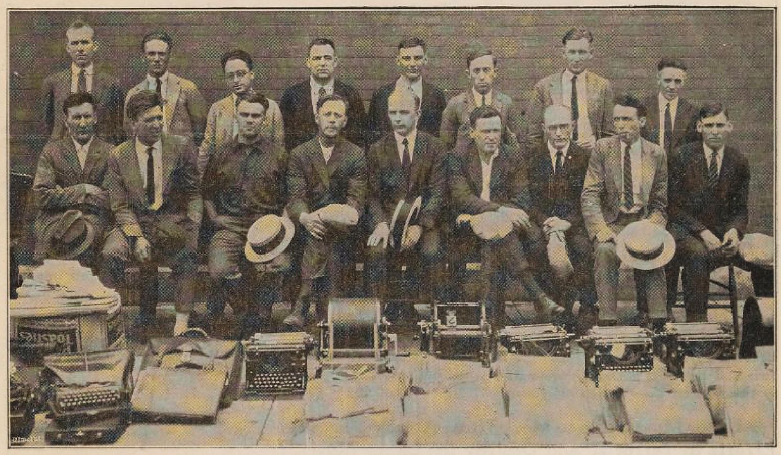 The second or third day the 17 were taken down in front of the jail, photographed from various angles, while the brave deputies stood on guard with shotguns held in readiness and revolvers bulging in every available pocket.