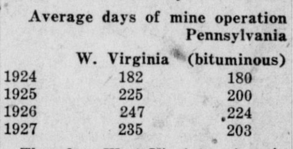 And since 1924 the West Virginia mines have been more steadily operated than the Pennsylvania mines.