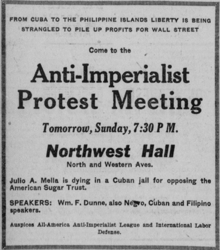 Charles Phillips took the name Manuel Gomez while living in Mexico as a draft evader during World War One and remained an important link between the U.S. Communist Party and the Spanish-speaking Americas. In response the A.F. of L.’s State Department project, the Pan-American Federation of Labor, Communists initiated the Pan-America Anti-Imperialist League in January, 1925 (changing the name shortly to All-America Anti-Imperialist League to further differentiate). The All-American League was a regional precursor to the the global League Against Imperialism founded in 1927.