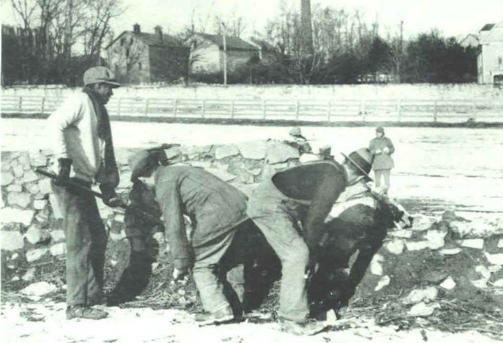 Let’s examine the function of the members of the Right to Live Club on the project, they call “Hungry Hill.” This is the project where the club originated and where the organization functions best at the present time. The project is a large park, and the men make paths, build stone walls and stairs, dig up stumps, bury large boulders, etc. The men pride themselves on being 100% organized on this particular project; and the organization is similar to a union organization in an organized shop. Some 300 men work here divided into working gangs of from 25 to 40 with a straw boss over each gang, and a head boss over the whole project.