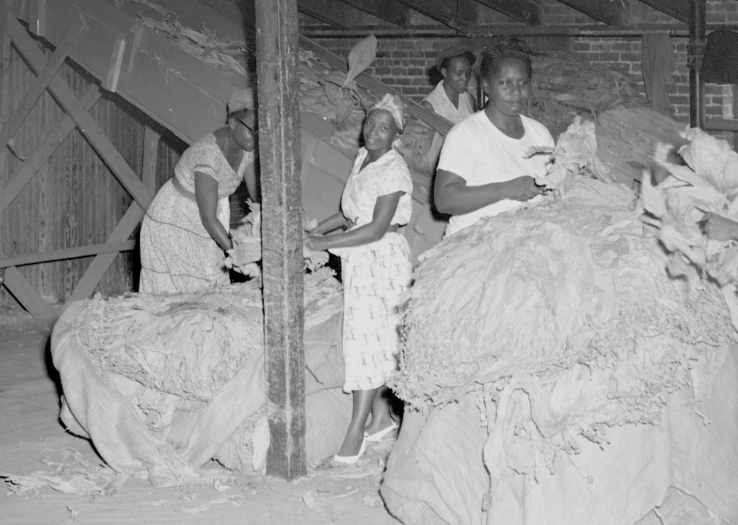Tobacco factories employ a fifth of the 110,000 Negro women in manufacturing industries. Centering largely in North and South Carolina, Kentucky and Missouri, the tobacco industry employs colored women on the heaviest, dirtiest, and dustiest jobs. Cigarette plants have moved away from New York City, where wages were a little higher, and are now concentrated in the low-wage southern states. Smaller cigar plants center largely in New Jersey and in New York City, on the upper east side. Unpacking the tobacco from hogsheads raises irritating dust, and it is Negro women who do this job. In the steaming room colored women are the ones who must stand the high degree of humidity and the heavy odor of damp tobacco. Steaming or stripping the tobacco leaves is a semi-skilled job, and Negro women do it well, but higher skill brings no promotion to any other department in the factory.