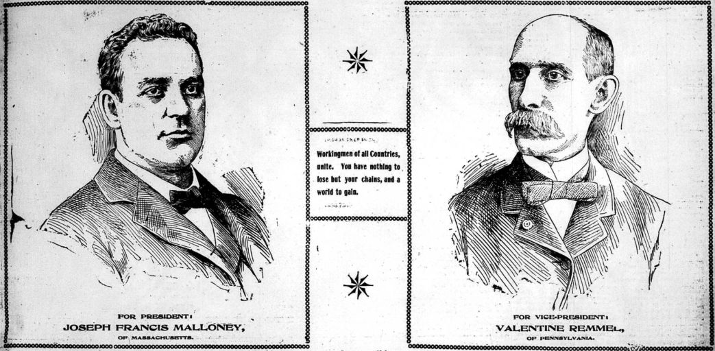 Standard-bearers of the Socialist Labor Party, Joseph F. Malloney and Valentine Remmel, in 1900.