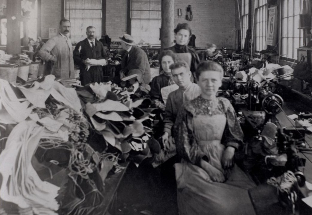 Prior to the ’50s the making of boots and shoes was “hand work” and was a leading occupation in Massachusetts and parts of New Hampshire and in certain cities in New York State. In those days the shoemaker worked at home, or in the old “ten-footer” of that period, where he hired “seat room.” Not only did the shoemaker work at the trade, but in many instances the entire family as well. The women assisted in the fitting of the upper, which was then done by hand, and the boys did odd jobs around the shop: But that day is no more. The hand worker, with his few crude tools and “ten-footer,” has passed away forever. His place has been taken by the modern shoe worker, the appendage of a highly developed tool, working in a mammoth factory, where hundreds, and in many instances thousands of “hands” are employed.
