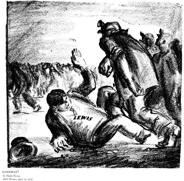 Ever since Lewis came into power his general policy has been one fatal to the union. His betrayal of the 1922 strike, one of the most shameful features of which was his abandonment of the Fayette miners, is typical. The signing of a separate five-year agreement for the anthracite was a crime against the miners; likewise his failure to strike the bituminous miners jointly with the anthracite miners in 1925 and thus put a stop to the violation of the Jacksonville scale. He made no preparation for the present strike; carried on no preliminary organizational work; and made no stimulation of the union for the struggle; and when the strike took place he did nothing to draw the unorganized into the fight. For six months after the strike began no organized relief was given the miners; militancy was systematically suppressed; no mass picketing; no mass violation of injunctions was engaged in. While the miners starved, he and his cronies drew their fat salaries. They directed the miners to place their hopes not in an aggressive fight but in futile appeals to Coolidge, empty senate investigations, etc.
