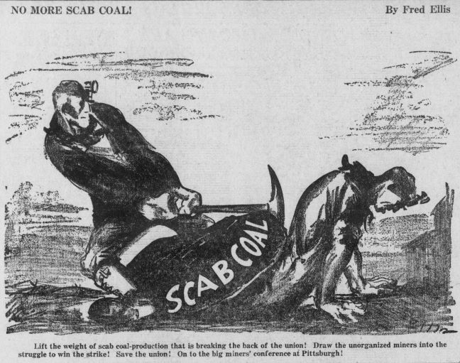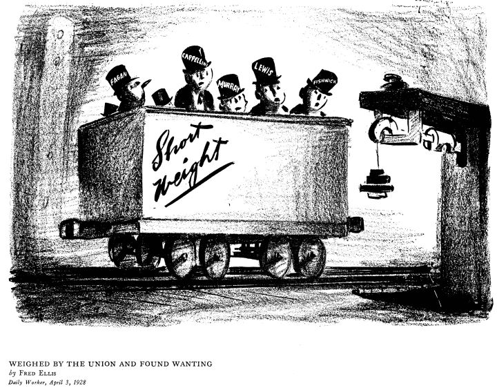 Two years ago the left wing, perceiving the increasingly dangerous position of the miners’ organization, raised the slogan of “Save the Union.” Forming a united front with the progressives on the basis of a minimum program including the Organization of the Unorganized, the Formation of a Labor Party, a National Agreement, 6 Hour Day and 5 Day Week for all Coal Miners, Nationalizing of the Mines, etc., the left wing embarked upon an intensive struggle against Lewis. This struggle first took the forms of an election campaign with the progressives putting up a ticket against the Lewis machine, a campaign for delegates to the national convention and for the organization of the unorganized miners in preparation for the approaching bituminous strike.