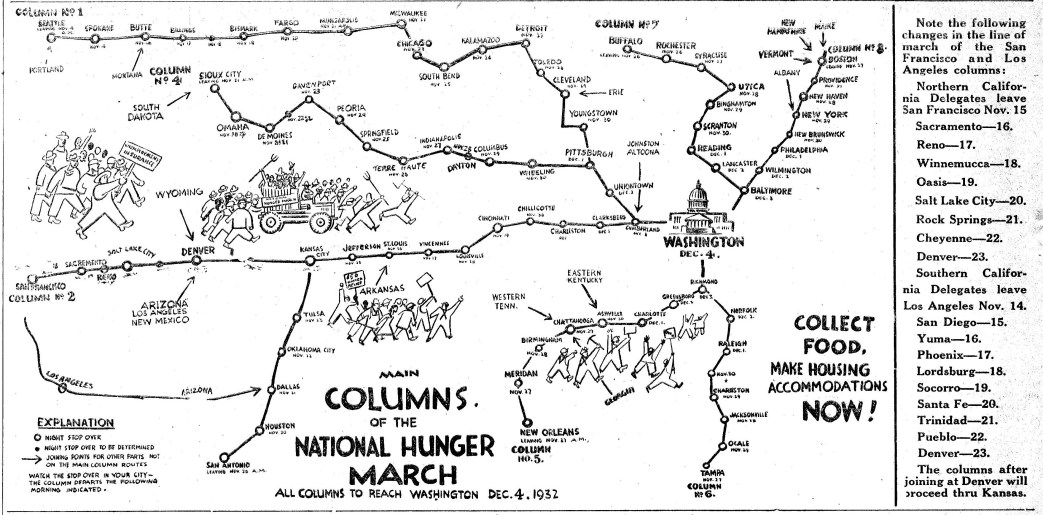 ‘West Coast Marchers to Reach Washington December 5th’ from Western Worker. Vol. 1 No. 24. November 14, 1932.