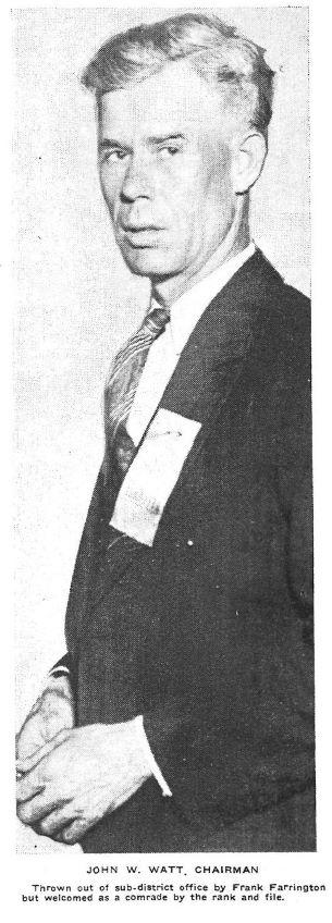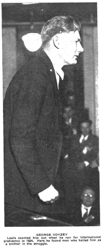 “John L. Lewis was never elected to the presidency of the Union,” said Toohey as the conference roared “No!” in agreement, “for he stole the election from Alex Howatt in 1922, he stole the election from Voyzey in 1924, and he stole the election from John Brophy in 1926. He has instituted a Mussolini regime in the unions, a regime of sluggings, of evictions and of beating down and terrorising the rank and file.