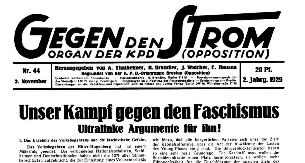 The party members are beginning to think and act independently. This healthy process takes place in a contradictory manner. New relapses into ultra-leftism accompany strongly opportunist deviations. The decisive tendency, sometimes unconscious, is, however, orientation in the direction of the Communist Opposition. Thus is to be explained the comradely relation which exists in many places between the members of the C.P.G. and the members of our group. “Brandlerism” is no longer the bogeyman that the party burocracy has tried to make it.