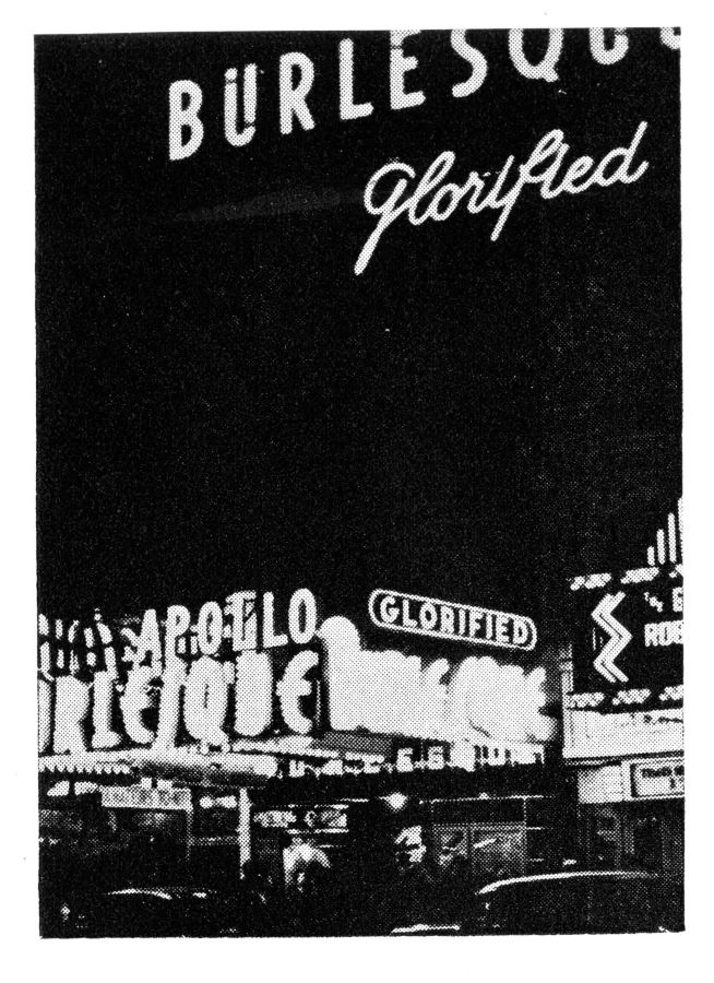 The strip act is followed by a chorus number, the dancing routines and costumes of which are generally simplified from those of a high-priced revue. The specialty number follows. This may be a tap dancer, a singer, a quartette. In the specialty number the chorus may again be brought into play with banal but revealing costumes. Multiply this sequence by four or five and you have a burlesque show.