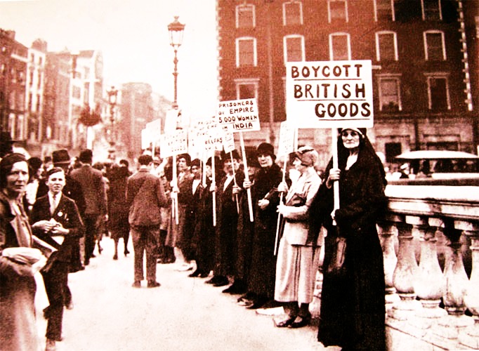 It is clear that the idea of a boycott of English goods by the Irish people is petty bourgeois in its class roots. It is the method of fighting Britain which springs to the mind of the shopkeeper and the small manufacturer, as combining patriotism with profit. In India, for instance, it is seen to be blatantly a policy of the Indian bourgeoisie, who, so far from using the boycott against Britain, turned it to their own mercenary class advantage and against any serious struggle by the Indian masses. The boycott is not a weapon of the working class. It can in no way lead to a fundamental challenge to British imperialism in Ireland. But does this mean that we oppose the boycott movement and isolate ourselves from it? No. Our task is to deepen and extend the struggle, at the same time pointing out to the Irish masses its weaknesses and deficiencies.