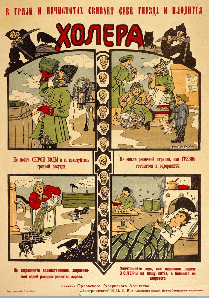 The year 1918 was marked by a cholera epidemic. The People’s Commissariat of Health undertook the most energetic measures to stop this epidemic and, in spite of very difficult working conditions, the outcome was a success: only 35,619 cases of cholera were recorded in 1918, while the previous cholera epidemic, in 1908, had more than 200,000 such cases. In the autumn of 1918, the “Spanish Influenza” swept over the country; more than 700,000 cases were recorded. In addition to the practical measures, the People’s Commissariat of Health also undertook a far-reaching scientific study of this as yet little known disease; scientific staffs were organized and instructed to gather all possible information concerning the nature and the types of the disease; meetings were held and much material was collected. Now a special commission, including many experts, is digesting this material and preparing it for publication.