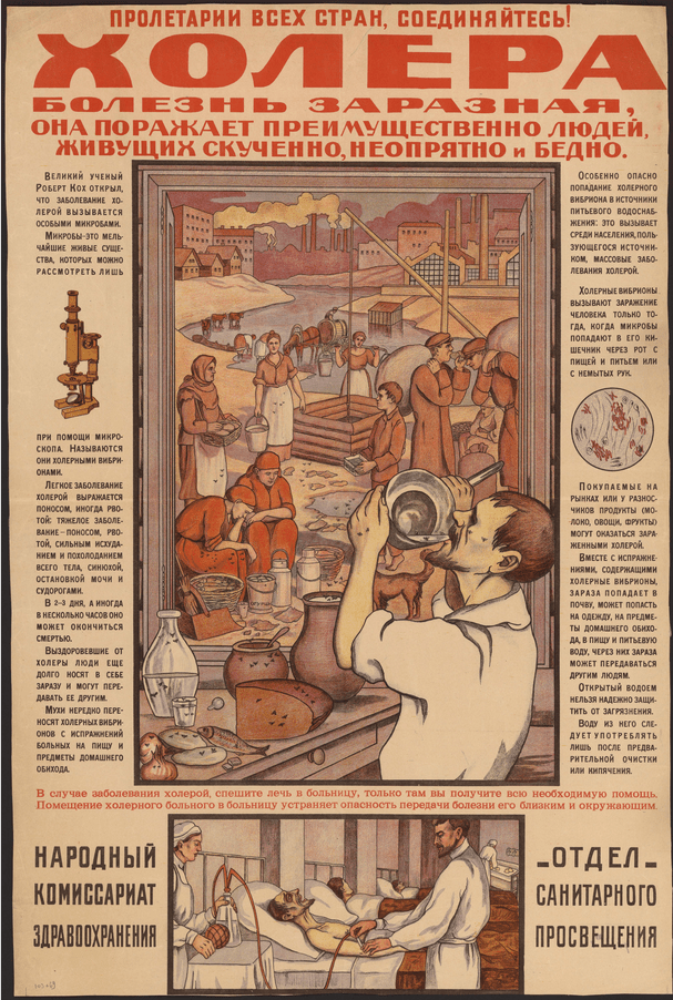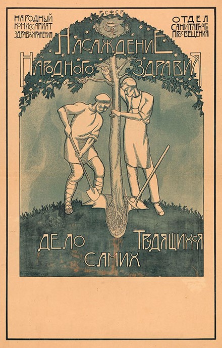 Everyone understands that in Russia all branches of government, including therefore the Commissariat of Health, are in the hands of representatives of the workers and peasants: “the Soviets of Workers’, Peasants and Bed Soldiers’ Delegates.” But the watchword of the Commissariat of Health means more than this. It means particularly that a great deal of assistance is received in the daily work of the Commissariat from the people themselves. In explanation, let us mention the Workers’ Committees to Combat Epidemics, established in 1918 by the Soviet of People’s Commissars. These committees functioned not only in the cities, but also in the larger villages, assisting the local sections of the People’s Commissariat of Health. During typhus epidemics, the duties of such committees consisted in inspecting the baths, the supply of soap, cleanliness of lodgings, especially of public institutions (stations, jails, boarding houses, etc.), and in spreading among the population correct information and advice on hygiene. Such committees are appointed in all the important districts of large cities; the elected have representatives in the factories. The assistance of women (workers and peasants) is particularly desired, for, being housekeepers, it is easy for them to teach the population habits of cleanliness. We may say without exaggeration that the epidemics of typhus and cholera were stopped chiefly by the assistance of the workers’ and peasants’ committees. But this is not all. Not a single important problem has been carried out without the assistance of the workers. The question of systematic measures to combat social diseases, such as phthisis and venereal diseases, was discussed with the representatives of trade unions, Women’s Organizations, Young People’s Unions, etc. The organization of sanitary protection for workers was carried out by special inspectors, elected from among the workers themselves: inspectors of dwellings were organized in the same way. Not only from the standpoint of organization, but also from the standpoint of its practical value, this system was of great importance. It is a fact that the People’s Commissariat of Health can only overcome the numerous difficulties met with in this impoverished and devastated country by assuring itself of the support and assistance of the population.