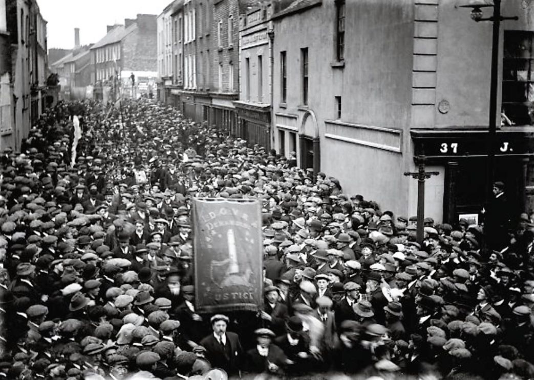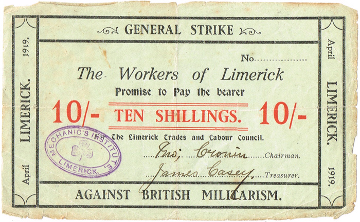 The faces of the Socialists gleamed with silent merriment. An altercation arose between defendant and prosecuting counsel ever the names of the Sinn Fein employers connected with the Limerick strike. Counsel protested against the mention of names. O’Hagan pointed out that these employers were prepared to act contrary to their Sinn Fein professions, and to side with the coercive forces of the British Government when it came to a question of their interests as employers against the interests of their employees. He waived the mention of names. Addressing the magistrates he said the prosecuting counsel had laid great stress upon the phrase stealing the soldiers, that special emphasis had been put on this aspect of the examination for the Crown, and that an effort had been made to insinuate that he had incited to bloodshed. The opposite was so–he was out to prevent, as far as possible, the slaughter of his class. The capitalists would see to it that blood would be shed in due course. He was accused of Bolshevism. The word Bolshevist was a bastard term which dates back to a Congress of the Russian Social-Democratic Labour Party held in 1903. The Bolsheviks were the revolutionary working class who had seized the means of production in Russia at a point when the capitalists had rendered those means, for all practical purposes, only fit for the scrap heap. They had saved Russia for the working people of Russia…At this point the magistrates interrupted that they knew what Bolshevism was, and that defendant must keep strictly to the charge preferred against him.