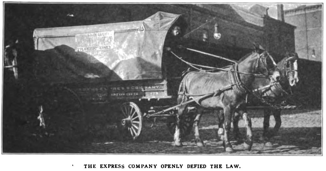 The strike commenced among the drivers and drivers’ helpers of the United States Express Company, a corporation: whose profits are so enormous that they pay 3 per cent dividends semi-annually on $10,000,000—over seven million of which is computed to be watered stock by the Merchants’ and Manufacturers’ Association of Milwaukee. This means 10 per cent “earnings” semi-annually on $3,000,000 actual capital. A splendid outpouring of rebellious workers from all the other express companies, and many department stores, followed, which included the employes of the Wells Fargo, Adams and American companies.