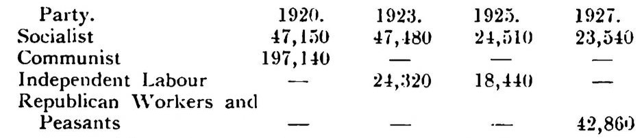 Last year symptoms of a move to the Left and of greater activity of the working class made their appearance. This found expression, first of all, in a series of stubborn economic struggles, some of which lasted from two to three months. The movement of the unemployed has lately embraced broad sections, organised in unemployed committees. Mass meetings have been held notwithstanding government prohibition, resulting in mass demonstrations and clashes with the police.